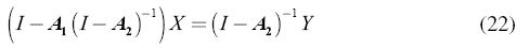 Donde A1 representa las relaciones de la rama separada y A2 al resto de la economía. De (19) se desprende: