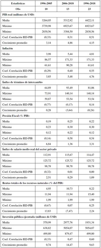Debido a la disponibilidad de información sectorial de la IED en Bolivia, cuya compilación fue iniciada por el INE a partir de 1996, para el modelo econométrico, se toma como valor inicial, justamente, el mencionado año.