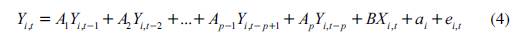 Con el modelo panel-VAR bivariado (Abrigo y Love, 2016; Lee, 2007; Love y Zicchino, 2006), se generalizaron las condiciones analíticas de la sección de estimaciones de los modelos, donde se determinaron de manera simultánea (1) la volatilidad económica de la varianza condicional (Fiaschi y Lavezzi, 2003; Launov et al., 2014) y (2) el crecimiento económico (Ramey y Ramey, 1995), los cuales están influidos por los recursos externos (X), las exportaciones petroleras (Maheu et al., 2017), la inversión extranjera directa (Jensen, 2011; Mamingi y Martin, 2018) y las remesas (Bugamelli y Paterno, 2011).