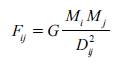 Donde M i M j . son las masas, D ij . es la distancia entre los dos objetos, y G es una constante.