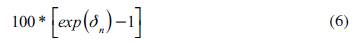 Los coeficientes representados por β n se interpretan como una variación porcentual; y para interpretar los coeficientes de variables binarias representados por δ n se calcula la diferencia porcentual exacta en Ltrade ¡jt predicha para cuando la variable dummy toma como valor 1 frente a cuando su valor es 0.