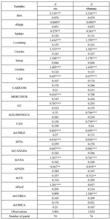 Errores estándar debajo del coeficiente. *** p < 0,01, ** p < 0,05, * p < 0,1 Fuente: elaboración propia con el software Stata.