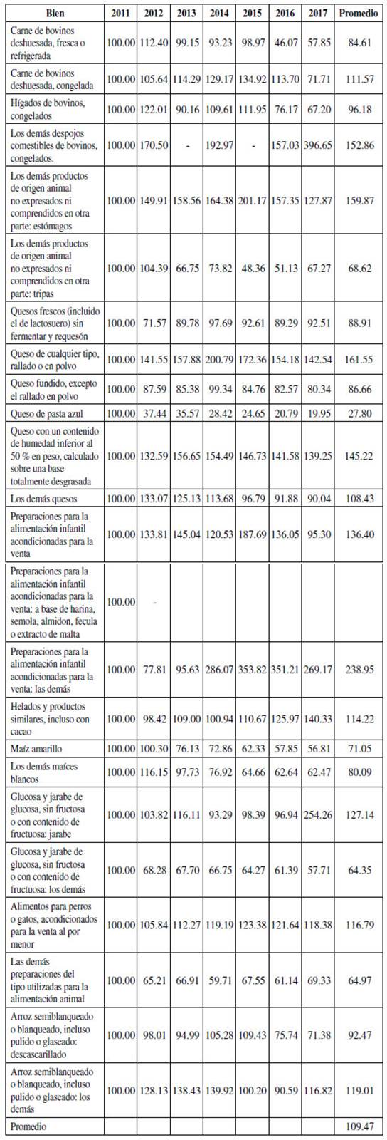 Tabla A3: Variación de los precios en las importaciones desde Estados Unidos de bienes bajo contingente arancelario