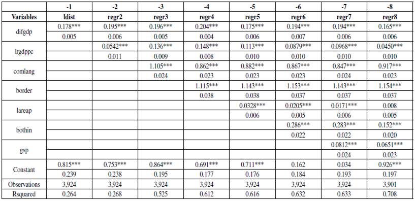 Border ¡j es una variable dummy que toma como valor 1 si ambos países comparten frontera, de lo contrario toma el valor 0.