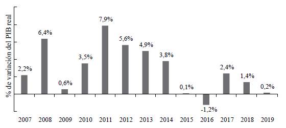 Figura 2: Tasa de crecimiento del PIB a precios de 2007