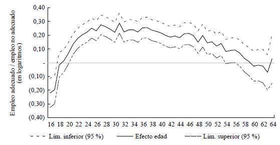 Figura 9: Efecto petróleo-edad sobre la ratio empleo adecuado-no adecuado