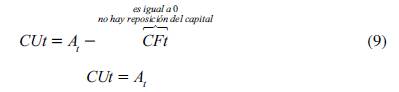 CU t es el costo de uso y se refiere a la inversión de mediano y largo plazo en forma de dinero (toda inversión que se requiera para la recomposición de maquinaria e insumos).