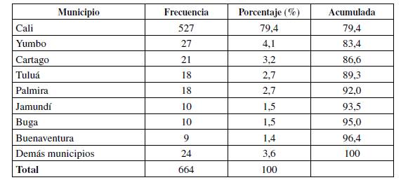 Tabla 1: Distribución de las empresas participantes según su ubicación por municipios, Valle del Cauca