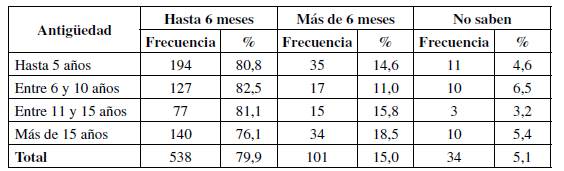 Tabla 4: Percepción del tiempo de normalización según quinquenios de antigüedad de la empresa