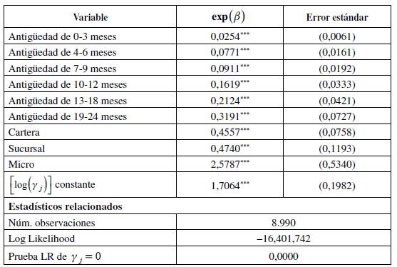 Tabla 8: Estimación del modelo de duración con heterogeneidad individual no observada
