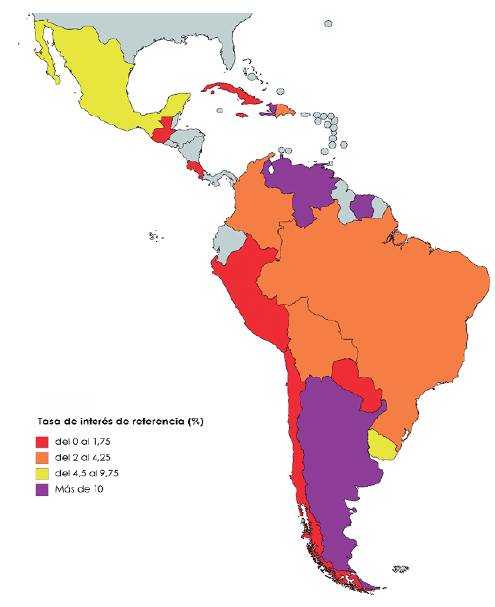 Figura 1: Tasa de interés de referencia en los países latinoamericanos