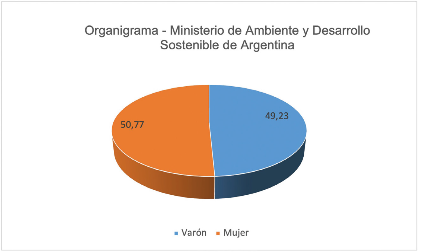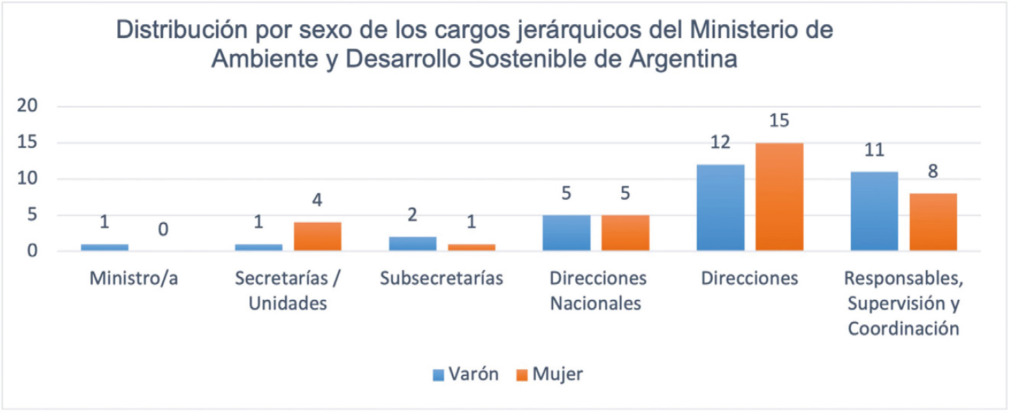 Figura 2.: Distribución por sexo de los cargos jerárquicos del Ministerio de Ambiente y Desarrollo Sostenible de Argentina