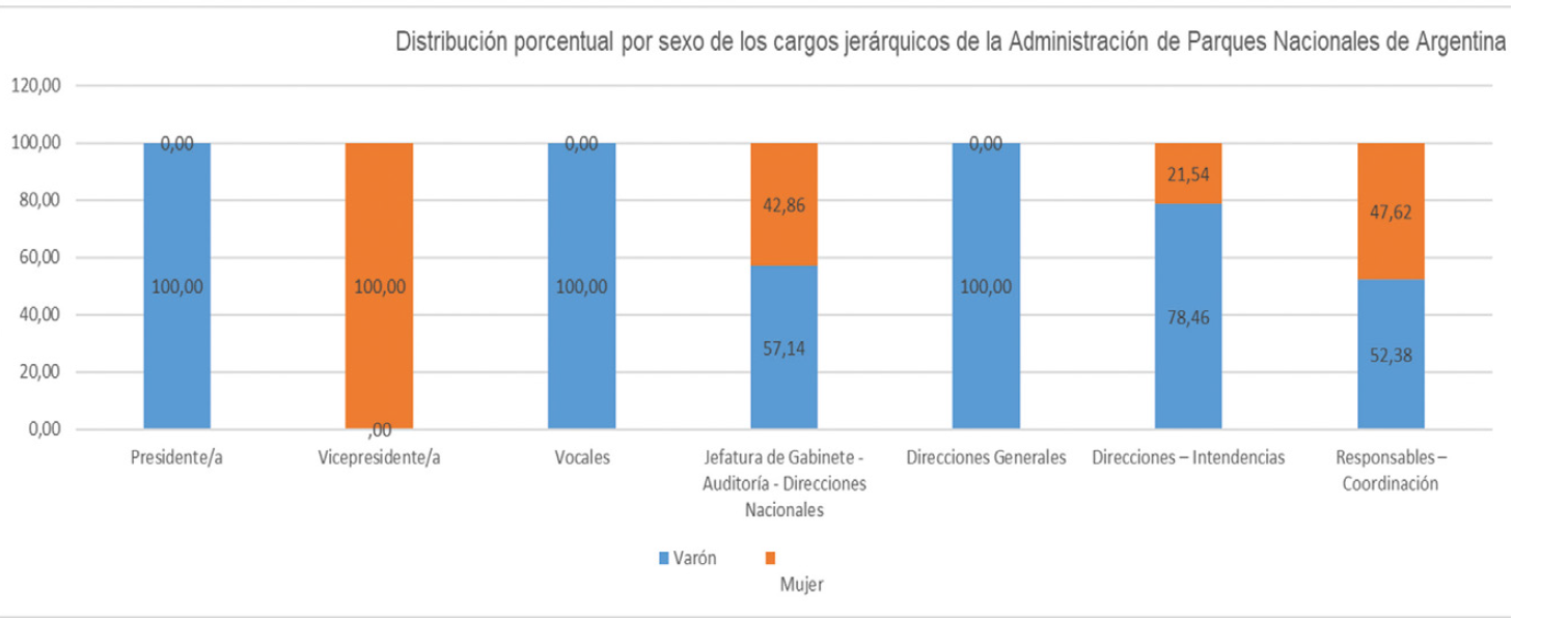 Figura 3.: Distribución porcentual por sexo de los cargos jerárquicos de la Administración de Parques Nacionales de Argentina