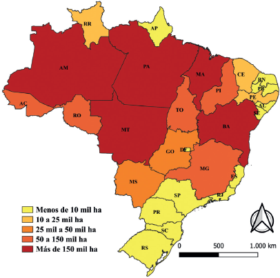 Figura 1.: Mapa de deforestación por Estados en Brasil durante el 2022