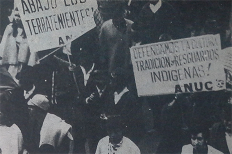 Fotografía que muestra el movimiendo indígena dentro de las manifestaciones de la ANUC: “Nosotros vemos con profunda preocupación la decadencia de lo que ha sido la mayor organización popular en Colombia”. (Unidad Indígena No. 9, noviembre, 1975)