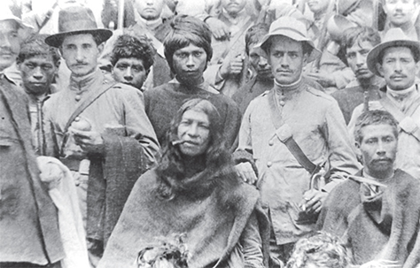 Quintin Lame detenido con algunos de sus compañeros en el Cauca, año 1916. Fotografía tomada de Peuple Nasa, La libération de la Terre Mère. Partie II. Recuperado de https://delautrecoteducharco.wordpress.com/2015/07/03/peuple-nasa-la-liberation-de-la-terre-mere-partie-ii/