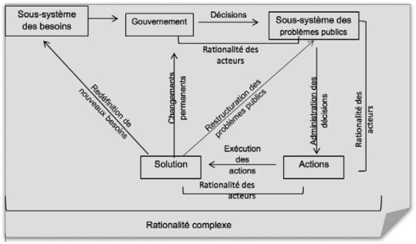 Ainsi, la systématisation de la rationalité complexe fait allusion à la réorganisation des idées et des logiques sous-jacentes dans le processus de construction des politiques publiques. Cette systématisation part de l’hypothèse selon laquelle la relation dialogique et multidimensionnelle entre les acteurs des politiques publiques obéit aux principes des systèmes complexes.