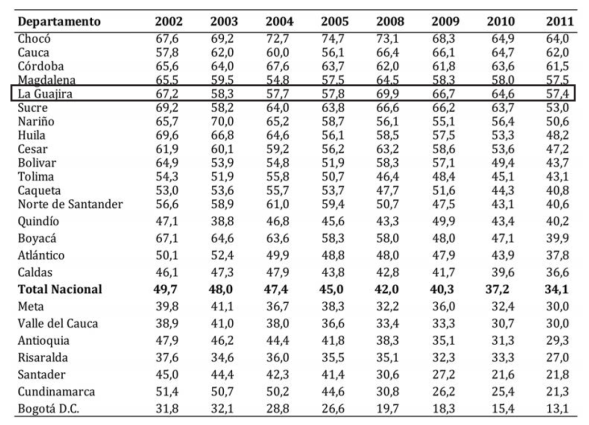 Tabla 2: Índice de pobreza de La Guajira 2002-2011