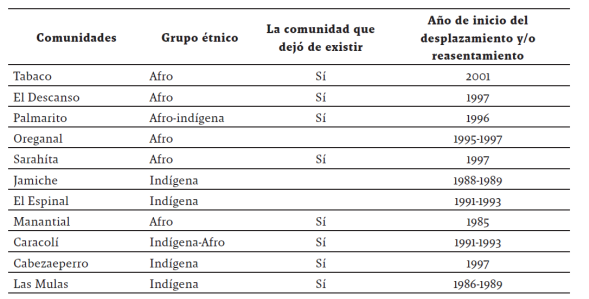 Tabla 3: Comunidades desplazadas y/o reasentadas debido a la extracción de carbón por parte de El Cerrejón