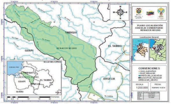 El Consejo Comunitario Renacer Negro (CCRN) es uno de los territorios de propiedad colectiva reconocidos para la población afrodescendiente en el municipio de Timbiquí. Los Consejos Comunitarios, como estructura organizativa, son uno de los mecanismos de garantía de derechos colectivos derivados de las innovaciones en la Constitución de 1991 y la Ley 70 de 1993. Estos organismos locales se consolidan como estructuras étnicas territoriales que permiten salvaguardar la autonomía cultural de los pueblos afros. Son mecanismos participativos y escenarios en donde se sintetiza la representación de las comunidades negras frente al Estado y otros actores en el territorio (Domínguez, 2017).