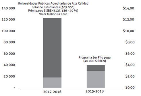 De hecho, según información ofrecida por el Ministerio de Educación Nacional, el valor de la matrícula cero en las 32 universidades públicas del país, que beneficiaría a cerca de 581 000 estudiantes matriculados, equivaldría a un billón de pesos en 2016. Es decir, el mismo costo anual que en la actualidad tiene el programa SPP.