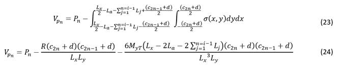 The shear force V yn is obtained by the pressure volume of the surface formed by the x n ´ - x n ´ axis with a width w n and the free end (top side of the Fig. 2) of the footing: