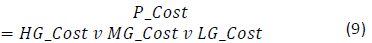 Para el modelo de costos de procesamiento (9) se tuvo en cuenta la ley de corte crítica que se computó con la ayuda del reporte estadístico generado dentro del ambiente de Deswik.CAD, para discriminar el material de acuerdo al contenido de Au y Cu en términos de la ley de Cu equivalente, se obtuvieron tres categorías en la Tabla 8: Low grade (LG), Medium grade (MG) y High grade (HG), y con base a esto definir los costos de procesamiento totales por medio de una fórmula condicionada en intervalos, que varía el costo de procesamiento según la presencia de los metales, así: