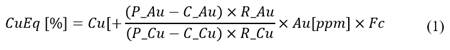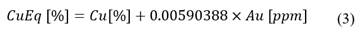 Esto será posible una vez se obtengan las leyes de corte crítica y marginal para el Cu[%], calculadas según (4) y (5) y su respectiva ley de Au[ppm] asociada, esto con el fin de definir la ley de corte crítica y marginal del CuEq según (3) con base a estos valores.
