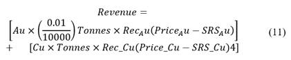 La tercera variable requerida por Deswik.CAD para ejecutar el comando del Pseudoflow es la función del Revenue que está dada por (11) y contempla todos los ingresos del proyecto a lo largo de la vida útil de este, así: