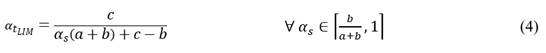 Where αtLIM is the limit availability, a, b, c parameters of the function and αs the output coefficient and constitutes the independent variable. The expression (4) represents the rational use limit, that is, the equilibrium between EB and ED. The expressions from (5) to (14) allow to calculate the function parameters for a set of vehicles assuming that equal vehicles operating in the same context have the same control limit. This expression includes the effects associates to the combinations of roles and the outsourcing influence.