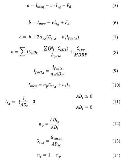 The time of work of a vehicle generates economic benefits, while the time out of service influences negatively, causing an economic damage. The economic benefit generated by the work of a vehicle in a given period depends on the daily benefit for working a and the time worked Tt of the vehicle according to eq. (1), while the economic damage is generated when the vehicle is in the states: inactive and out of service and is calculated as shown in eq. (2):