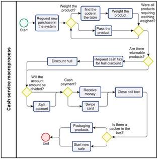 In the case of Management by Processes, it aims to detect the interaction between the various activities and processes carried out by a company, through a totalitarian and integrated view of it. In Process Management, the first necessary measure is the total mapping of the company's processes, making it possible to identify all the integration between the operations, as well as the singularities and needs of each one of them. However, the study only contemplated the mapping of the cashier service macroprocess, since it was inefficient above other sectors. Thus, Fig. 2 represents an outline of the analyzed macroprocess.