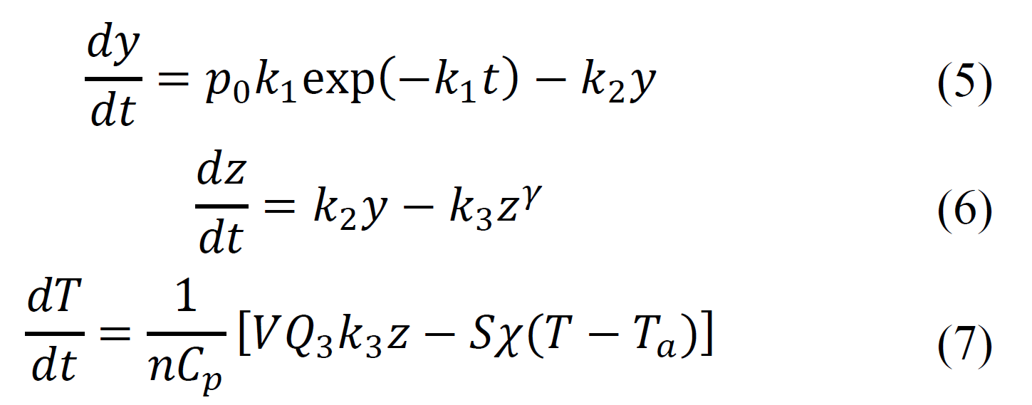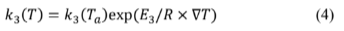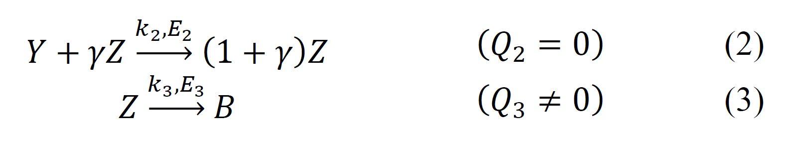 In this case, thermal dependence is linked to the conversion Zk3 →B (the exothermic reaction with enthalpy Q3 ≠ 0 ), where takes the form of eq. (4):
