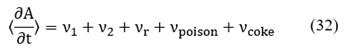 The temporary change of the average active area can be defined as a function of the rates of each mechanism step. In other words, the temporary change of the internal variable depends on the rate of adsorption, desorption, reaction, poisoning, and coking. Thus, we write the following expression: