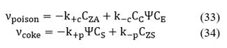 We consider two cases in which a catalyst could lose its activity, that is, deactivation by coking (νpoison = 0) and by poisoning (νcoke = 0).