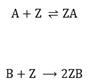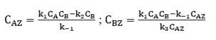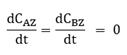 For reactive complex AZ and BZ, there is no temporal change according to the pseudo-steady state approximation: