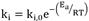 , where ki,0 is a pre-exponential factor and Ea is the activation energy in kJ/mol.