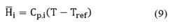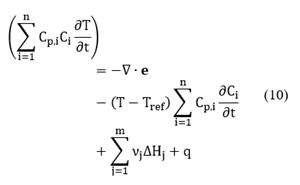 where Tref = 298.15K and Cp.i is the heat capacity of species i. Replacing Equation (9) into Equation (8) and neglecting pressure, viscous, and Dufour effects, the following expression for the energy conservation is obtained: