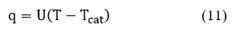 where U is the global heat transfer coefficient per unit area of the catalyst, and Tcat is the catalyst temperature.