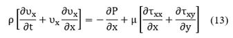 where is the density of the mixture and μ is the viscosity. In rectangular coordinates along the x axis: