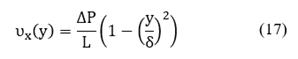 The goal is to calculate the velocity variation over time, but it is important to note that velocity is a function of two spatial coordinates: υx = υx (x,y), however for the sake of simplicity, it is possible to assume that velocity changes only depend on the x-coordinate and taking an average over y-axis, the velocity is given by Stokes flow: