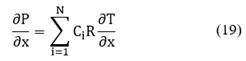 Equation (18) is solved to calculate the velocity changes over time, and it is valid only for the bulk phase. On the other hand, a pressure gradient is associated with concentration changes. In this case, the ideal gas model was used