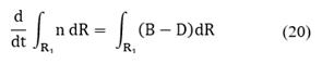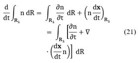 Consider a given subregion R1 that is moving with the particle phase-space velocity ν, then the population balance for particles in R1 is given by: