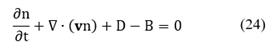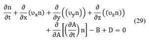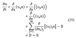 The term which depends on is known as the growth rate, whereas the terms that are a function of the external velocities: υx, υy and υz denotes the velocity. Equation (25) is a number continuity equation in particle phase space, is entirely general, and is used when the particles are distributed along both the external and internal coordinate space. This expression must, in any case, be adapted for a particular problem [10].