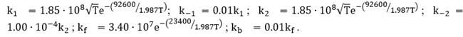 The forward kinetic constants that are used in this work are given by Rawlins et al. [27], and the backward constants are proposed to be fractions of the forward constants: