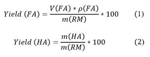 Mass of dried HA: m(HA), g (the precipitate of the acid extraction, for gravimetric methods).The extraction yield of FA and HA is calculated by the next expressions: