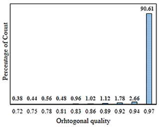 Figure 4: Histogram of Orthogonal quality mesh for the SMA1-flame mesh.