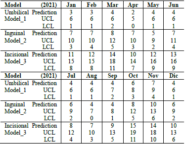The proposed structure applies to each of the MDCs. The Most Probable Value, UCL and LCL columns are results of the software, while the “Value” column is the correction of the forecast by the expert (it expresses the value that the expert considers the forecast should have)