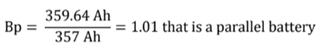 Also used to calculate the batteries in parallel, it is described using eq. (10):