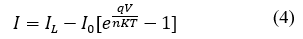 Where I L is the light current, so its effect on the characteristics of the current-voltage graph can be analyzed by the eq. (4):